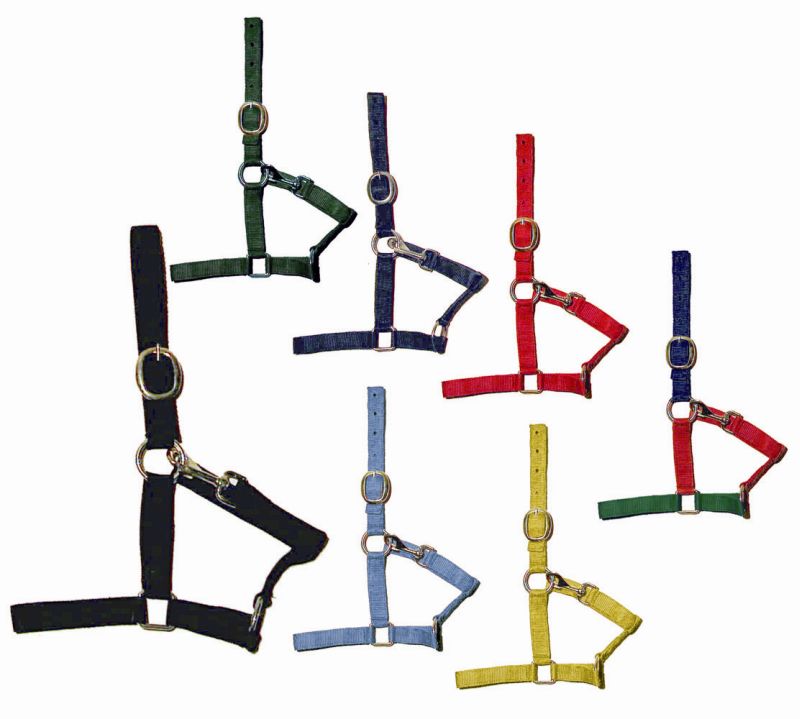 Karabiner a toroknál és csat a tarkónál. Oktatási célokra létezik a többszínű (98) változat, mely csak póni és kis póni méretben kapható.